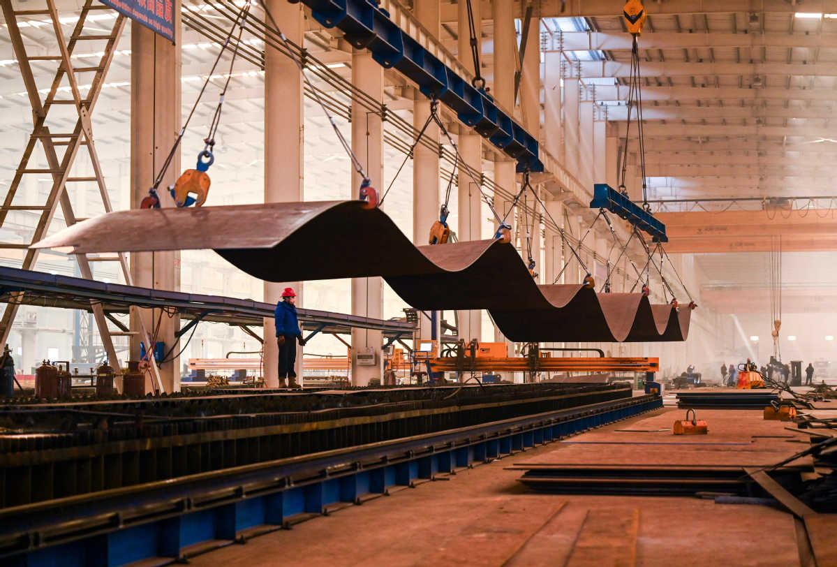Staff members work on a production line at an industrial park in Tongliao, Inner Mongolia autonomous region, in January. HE SHUCHEN/XINHUA