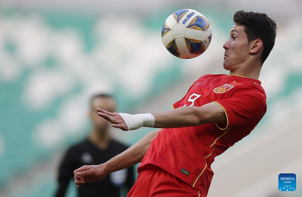 Baihelamu Abuduwaili controls the ball during the Group D match between China and Saudi Arabia of AFC U20 Asian Cup in Tashkent, Uzbekistan, March 6, 2023. (Photo by Che Zhouyong/Xinhua)