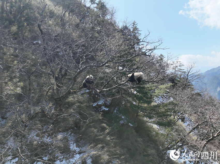 Two adult giant pandas were found "dating" in a tree in Tangjiahe National Nature Reserve at China's Giant Panda National Park in southwest China's Sichuan Province on March 3.