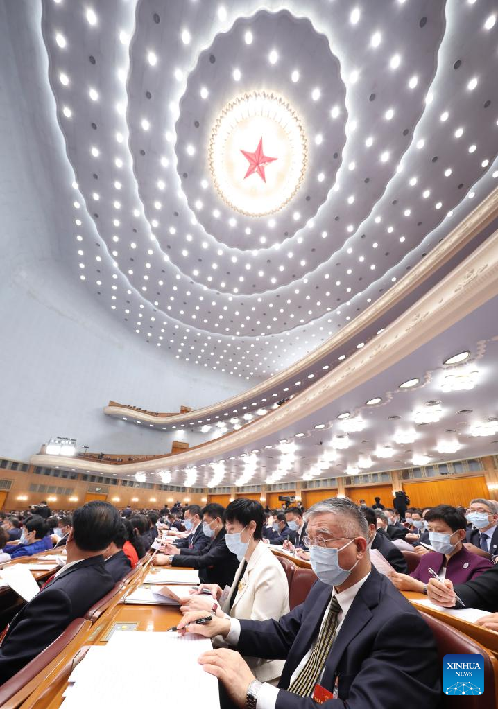 Deputies to the 14th National People's Congress (NPC) attend the second plenary meeting of the first session of the 14th NPC at the Great Hall of the People in Beijing, capital of China, March 7, 2023. (Xinhua/Liu Jinhai)