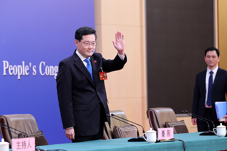 Foreign Minister Qin Gang attends a news conference on China's foreign policy and foreign relations during the first session of the 14th National People's Congress in Beijing, March 7, 2023. [Photo by Wang Zhuangfei/chinadaily.com.cn]