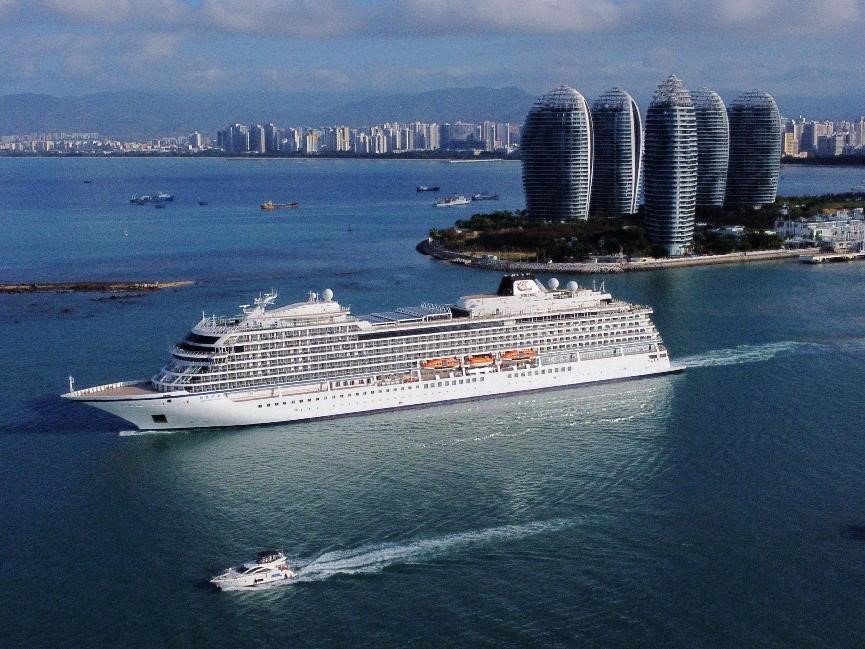 China Merchants-Yidun, the first luxury cruise ship to bear the Chinese flag, departures from Phoenix Island, Sanya, south China's Hainan province, Feb. 9, 2023. (People's Daily Online/Ye Longbin)