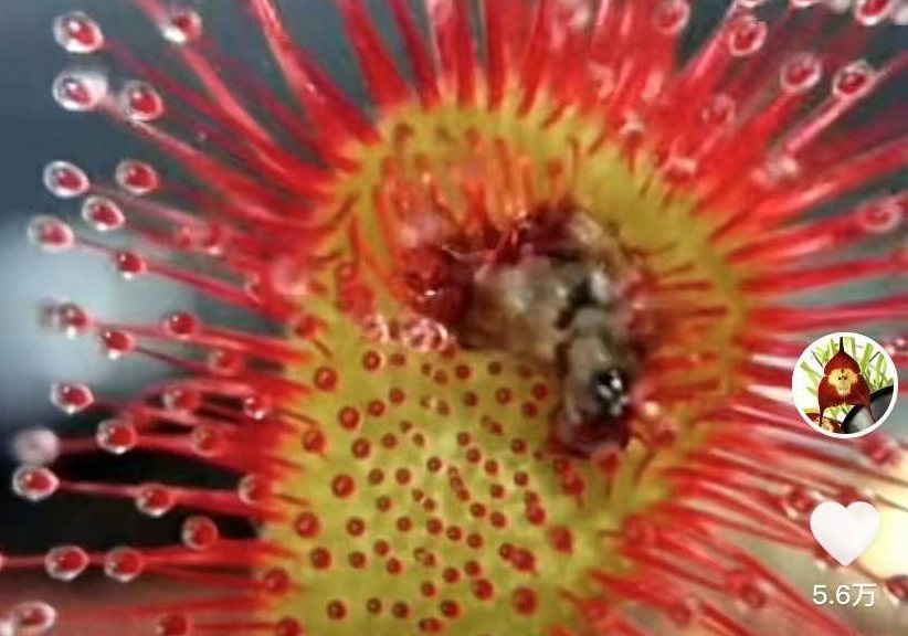 Photo shows Drosera peltata, which feeds on insects. (Screenshot from Chen Qiqi's Douyin account)