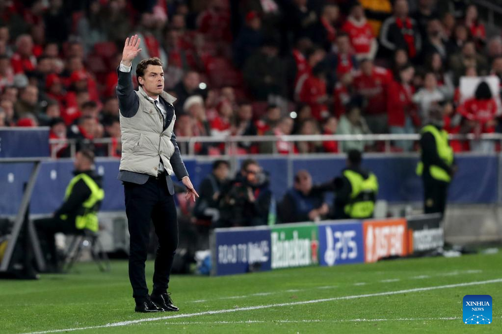 Club Brugge's head coach Scott Parker gestures during during the UEFA Champions League round of 16 second Leg football match between SL Benfica and Club Brugge at the Luz stadium in Lisbon, Portugal on March 7, 2023. (Photo by Pedro Fiuza/Xinhua)