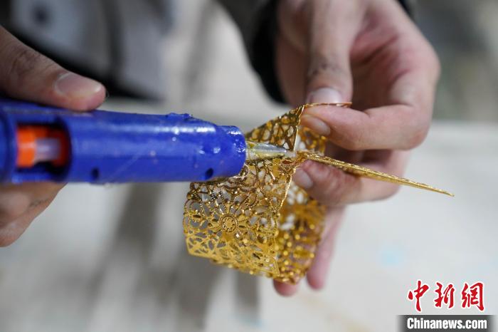 Pei Youshu, a Chinese Indonesian Gen Z stylist who studies in China, makes accessories. (Photo/Wang Yizhao)