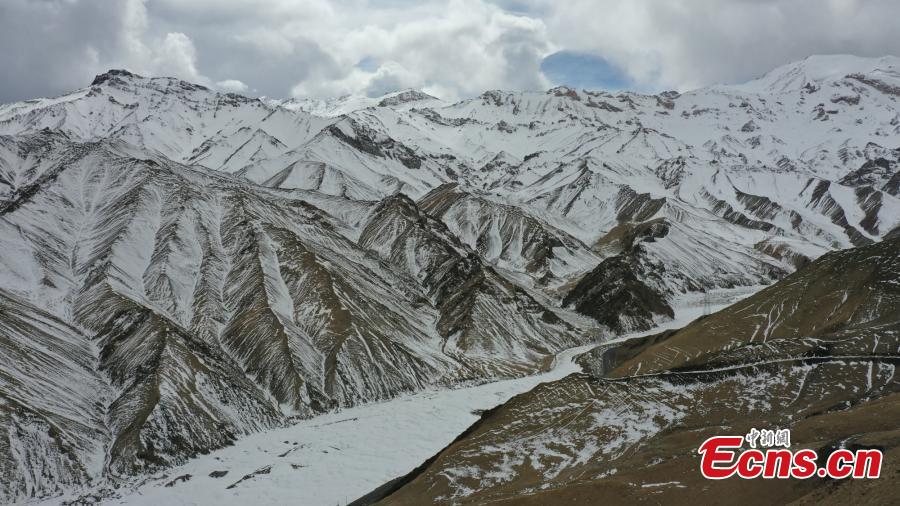 Aerial view shows the Xinjiang-Tibet Highway passing through mountains. As one of the world's highest motorable roads, Xinjiang-Tibet Highway, or China National Highway 219, connects northwest China's Xinjiang Uygur Autonomous Region and southwest China's Tibet Autonomous Region with an average altitude of over 4,500 meters. (Photo: China News Service/Sun Tingwen)