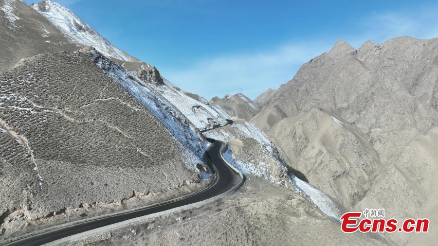 Aerial view shows the Xinjiang-Tibet Highway passing through mountains. As one of the world's highest motorable roads, Xinjiang-Tibet Highway, or China National Highway 219, connects northwest China's Xinjiang Uygur Autonomous Region and southwest China's Tibet Autonomous Region with an average altitude of over 4,500 meters. (Photo: China News Service/Sun Tingwen)