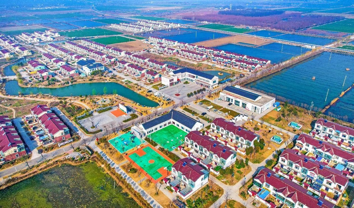 Photo taken on March 6, 2023 shows rows of houses neatly built in Zhenyou community, Xinzhuang township, Suyu district, Suqian, East China's Jiangsu province. [Photo/People's Daily Online]