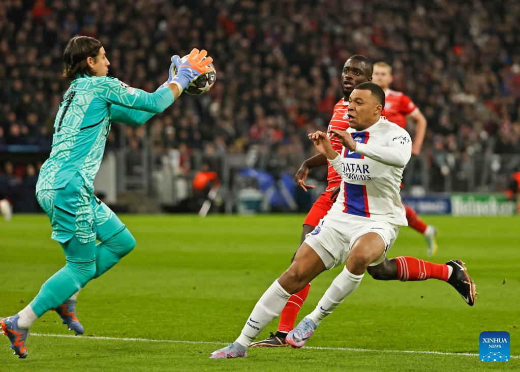 BERLIN, March 8 (Xinhua) -- Bayern Munich advanced into the UEFA Champions League quarterfinals after seeing off Paris Saint-Germain 2-0 (3-0 on aggregate) thanks to second-half goals from Eric Maxim Choupo-Moting and Serge Gnabry in the second leg of the last 16 on Wednesday.