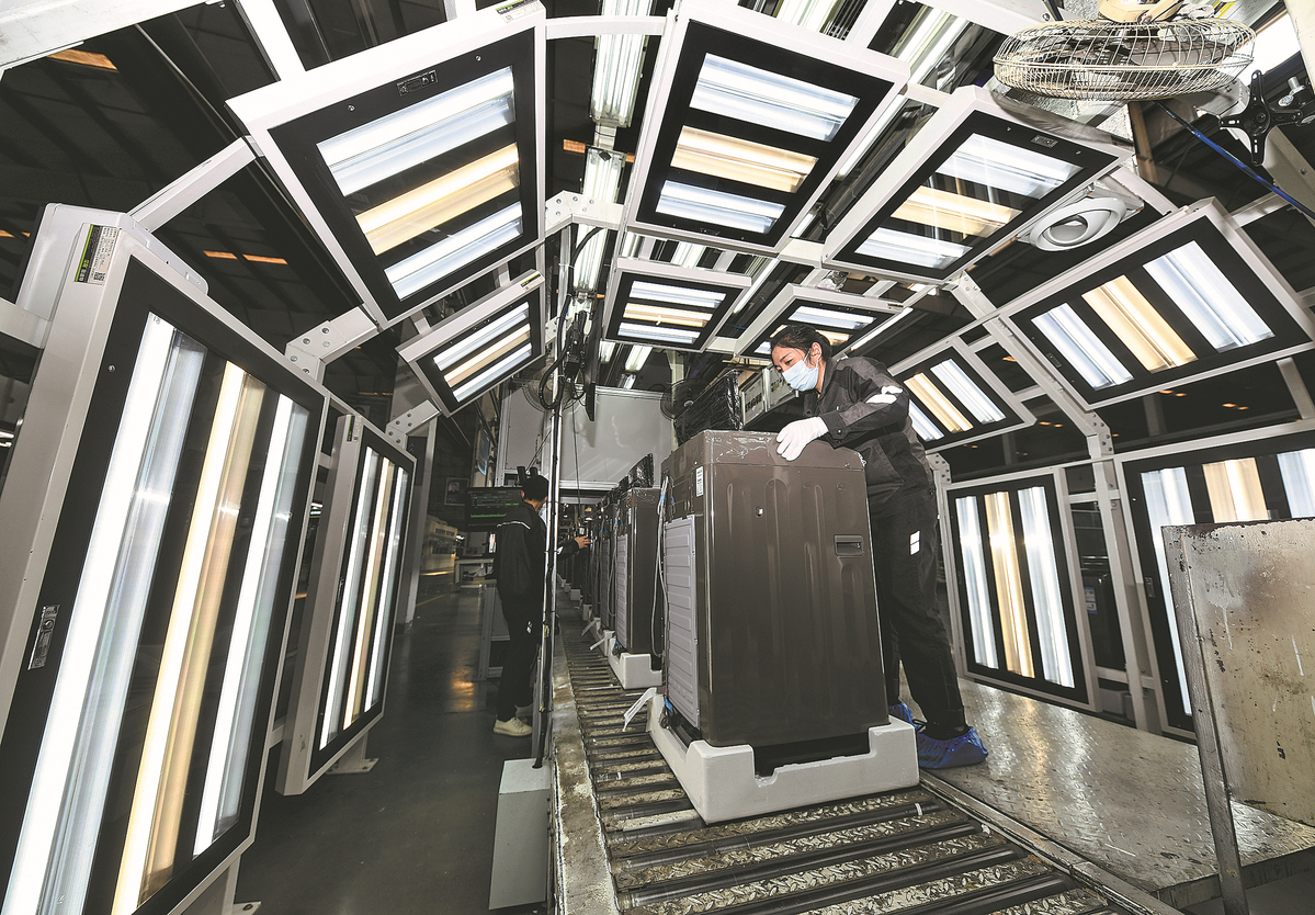 Technicians check washing machines at a manufacturer in Chongqing. WANG QUANCHAO/XINHUA