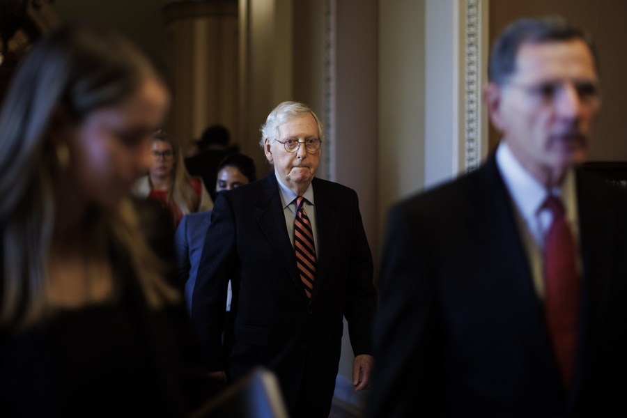 U.S. Senate Minority Leader Mitch McConnell is seen on Capitol Hill in Washington, D.C. Dec. 14, 2021. (Photo by Ting Shen/Xinhua)
