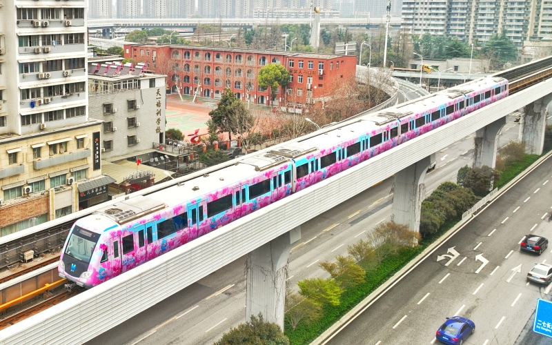 Cherry blossom-themed metro trains make debut in Wuhan, C China’s Hubei (5)