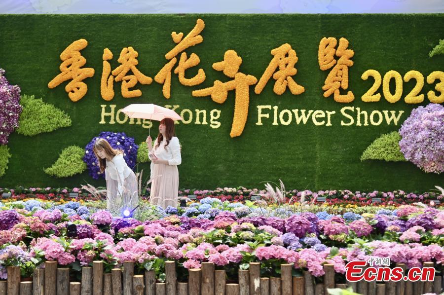 Flowers are on show during the Hong Kong Flower Show 2023, which will last from March 10 to 19 after a three-year hiatus at Victoria Park, exhibiting over 400,000 flowers. (Photo: China News Service/Li Zhihua)