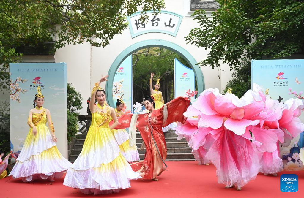 People perform to celebrate Hua Zhao Jie, meaning Flower Festival, at a park in Fuzhou, southeast China's Fujian Province, March 11, 2023. (Xinhua/Lin Shanchuan)