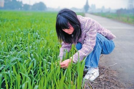 Wang Lingli, a professional farm manager, checks on the growth of wheat in Chongzhou, a county-level city administered by Chengdu, capital of southwest China’s Sichuan Province. (Photo/West China City Daily)