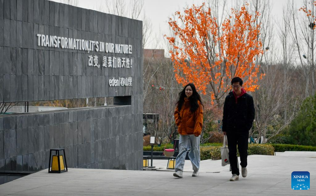 People visit the "eden Chunshanli" life demonstration area in Jizhou District, north China's Tianjin, March 11, 2023. (Xinhua/Sun Fanyue)