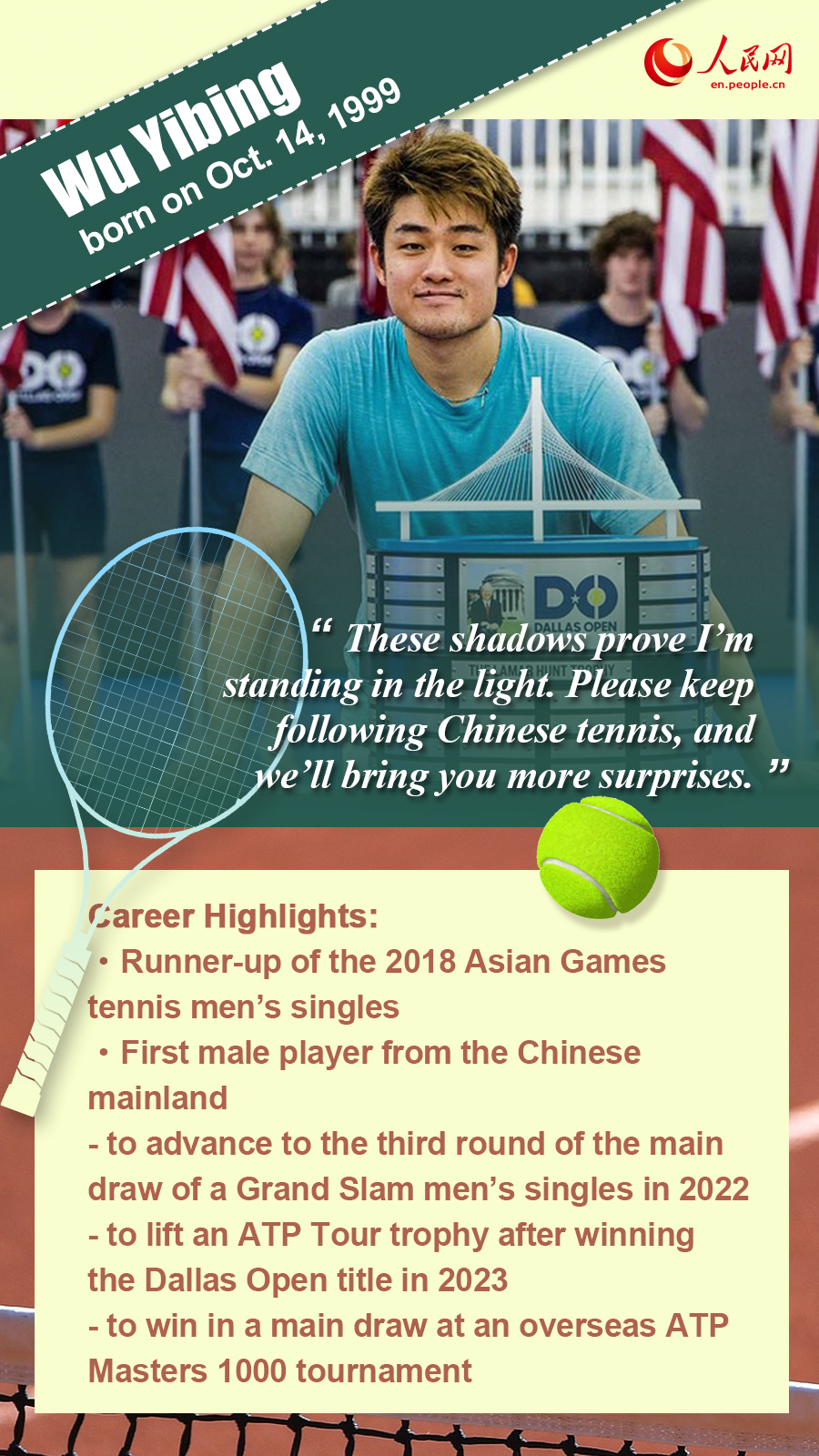 In January, a total of 10 players from the Chinese Tennis Association qualified for the main draw of the Australian Open singles, a record number. In February, Zhu Lin won her first-ever WTA Tour singles title; Wu Yibing became the first Chinese mainland player to lift an ATP Tour trophy after winning the Dallas Open.