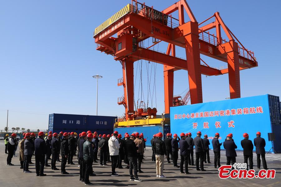 A opening ceremony is held at Zhoukou Central Port in central China’s Henan Province, March 13, 2023. (Photo: China News Service/Zhao Lei)