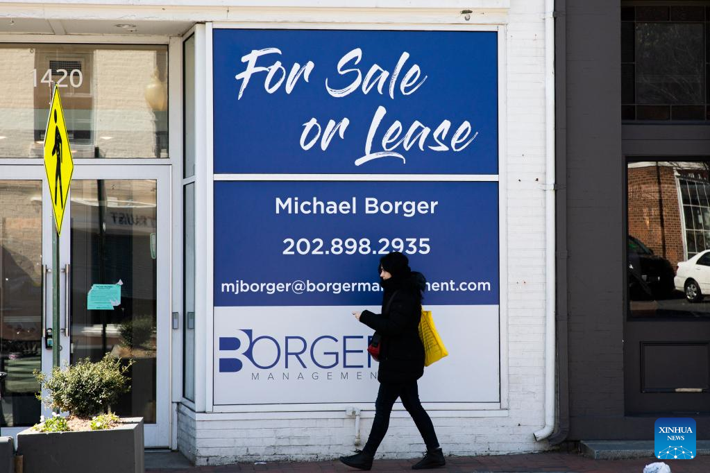 Photo taken on March 14, 2023 shows a building for sale or lease in Washington, D.C., the United States. The U.S. Consumer Price Index (CPI) for All Urban Consumers rose at 0.4 percent in February, according to government data released on Tuesday. (Photo by Aaron Schwartz/Xinhua)