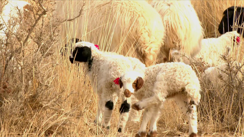 Herdspeople help ewes give birth in pastures in NW China's Mangya city