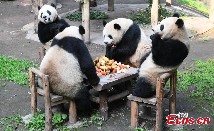 Giant pandas enjoy refreshments at Chongqing Zoo (2)