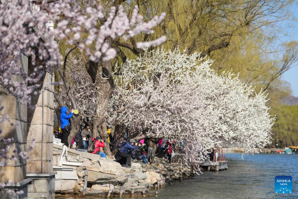 Tourists take photos in the Summer Palace in Beijing, capital of China, on March 15, 2023. (Xinhua/Chen Yehua)