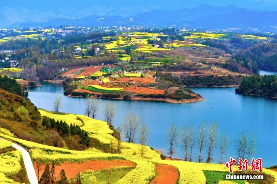 Spring colors form a natural palette across a blooming cole field in Hanzhong, northwest China's Shaanxi Province. (Photo: China News Service/Luo Hantao)