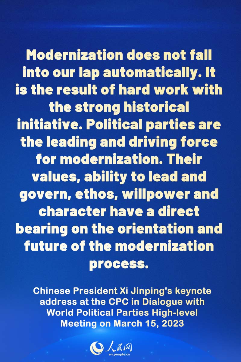 - Highlights of President Xi’s speech at the CPC in Dialogue with World Political Parties High-level Meeting