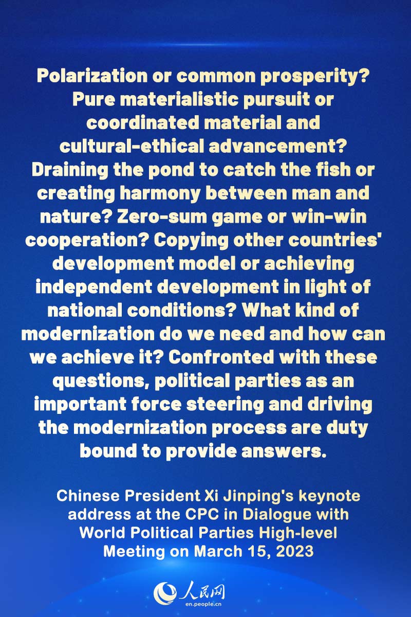 - Highlights of President Xi’s speech at the CPC in Dialogue with World Political Parties High-level Meeting
