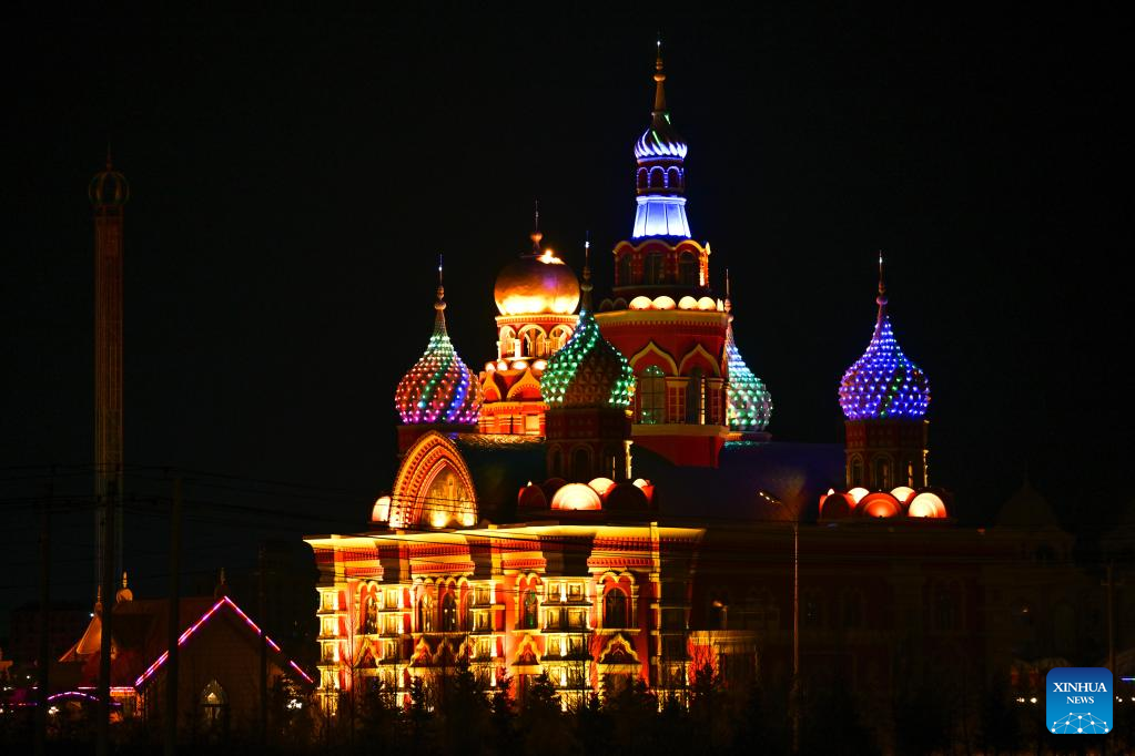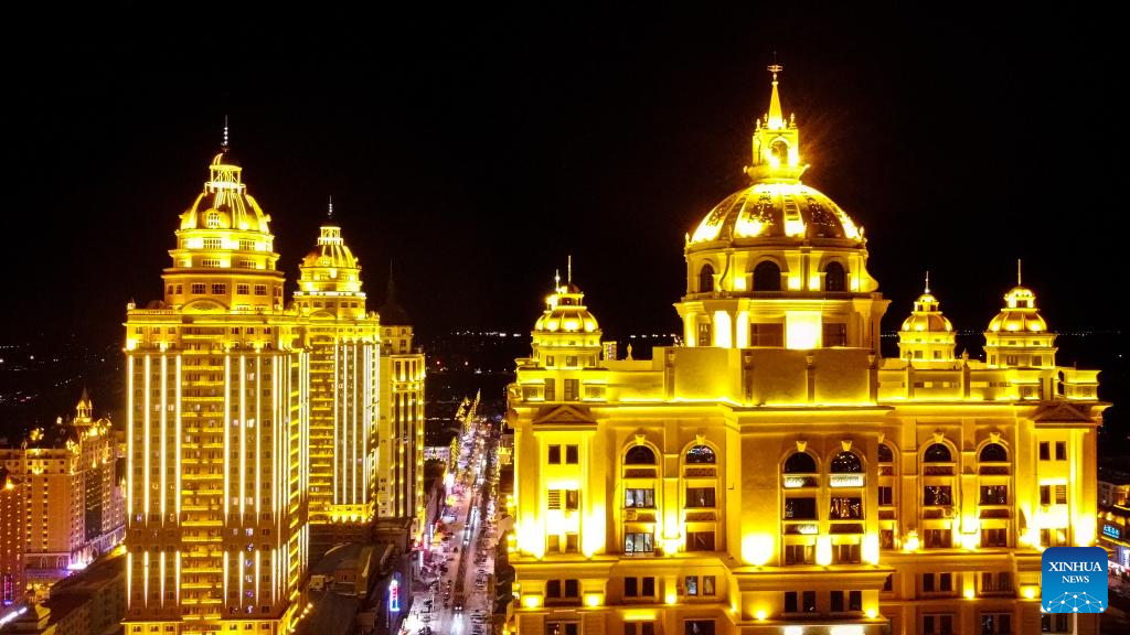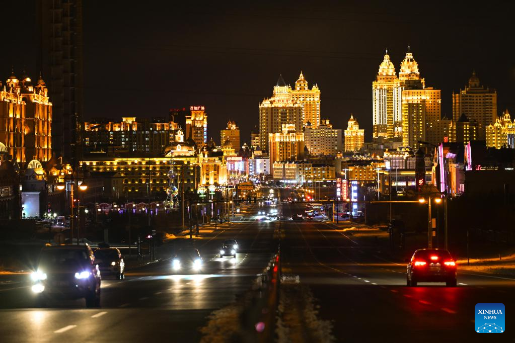 This photo taken on March 15, 2023 shows the night scenery of Manzhouli in north China's Inner Mongolia Autonomous Region. (Xinhua/Wang Kaiyan)