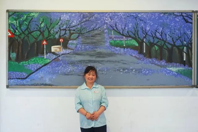 "I take pleasure in painting, so I'm happy to do it," she said. The blackboard is on the first floor, so students can see it whenever they enter and exit the building, she added. "I want to give the students a different feeling, and hope they will feel happy when they see the paintings," Wu added.