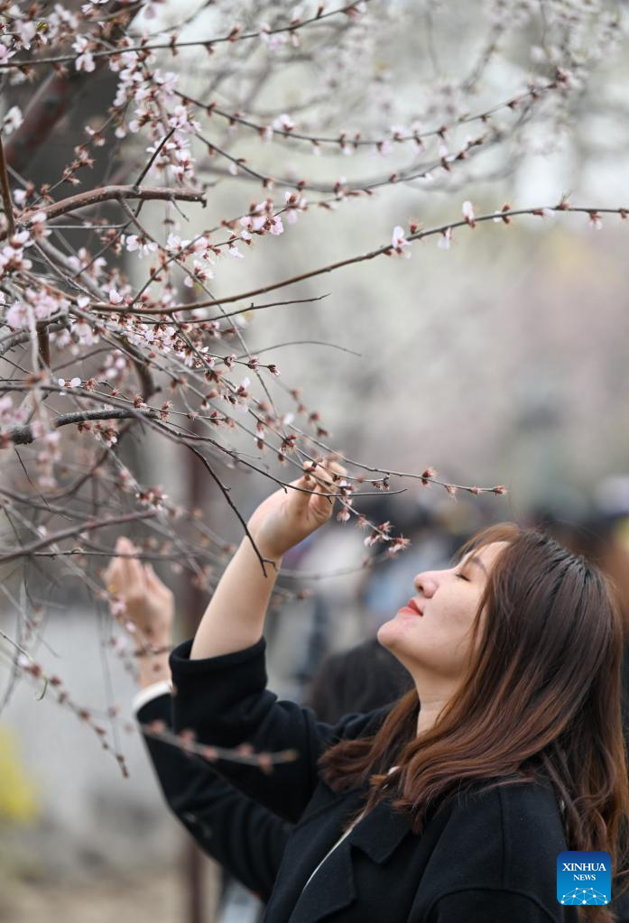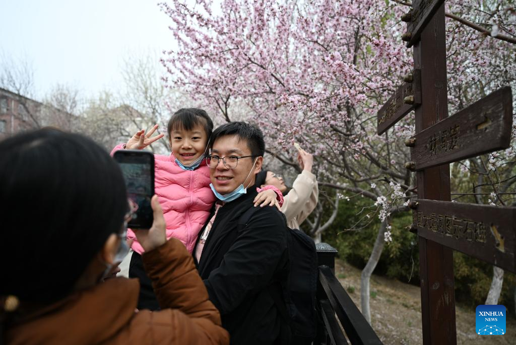 Tourists enjoy peach blossoms in N China's Tianjin