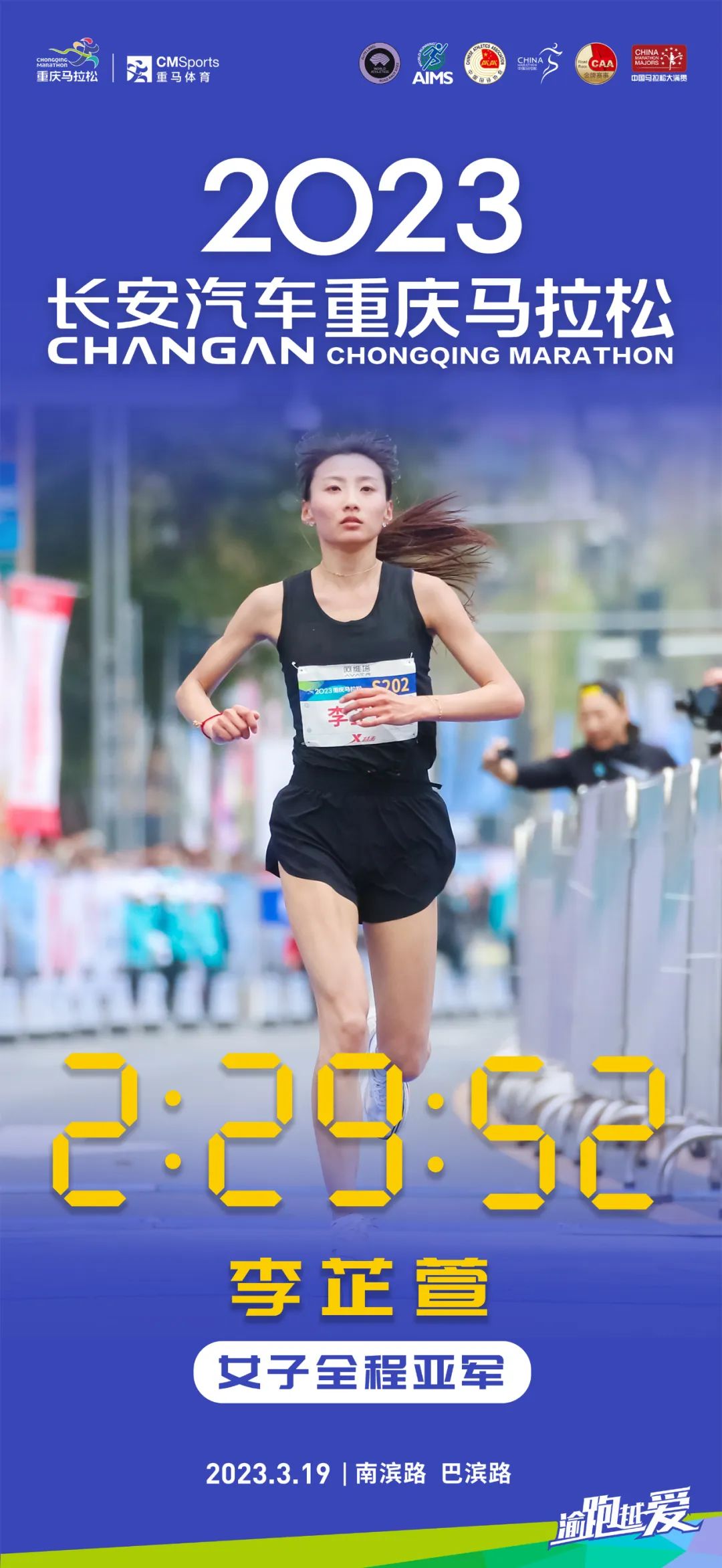 Chinese runner Li Zhixuan finishes second in the women’s group. (Photo/Chongqing Marathon)