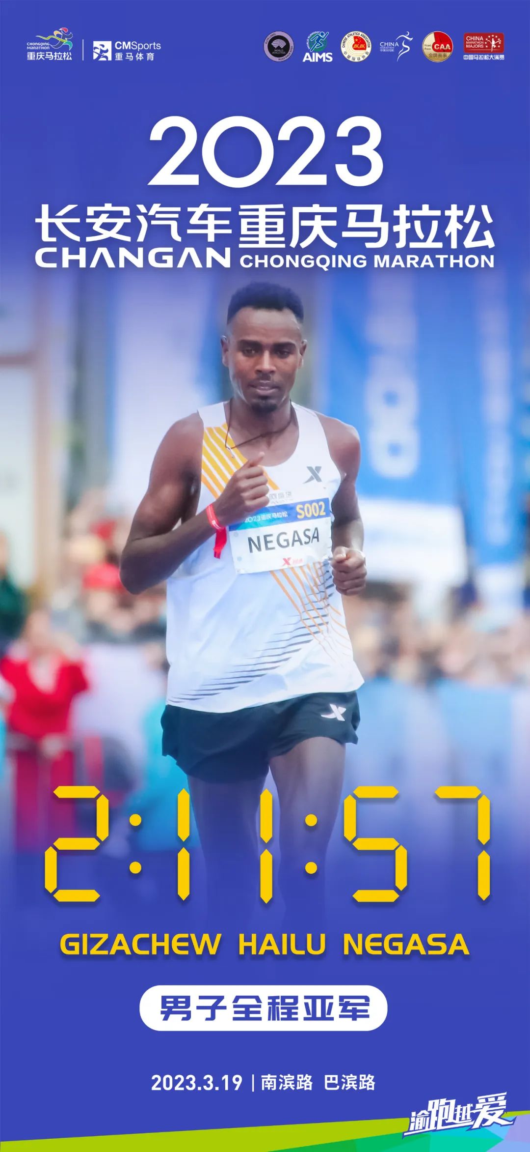 Gizachew Hailu Negasa from Ethiopia finishes second in the men's group. (Photo/Chongqing Marathon)