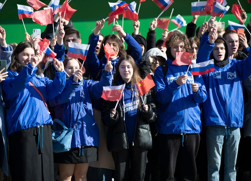 People welcome Chinese President Xi Jinping in Moscow, Russia, March 20, 2023. At the invitation of Russian President Vladimir Putin, Chinese President Xi Jinping arrived here on Monday afternoon for a state visit to Russia through Wednesday. (Xinhua/Bai Xueqi)