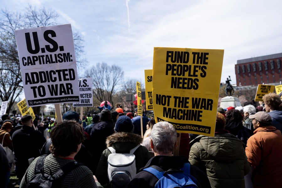 Protesters gather during an anti-war demonstration in Washington, D.C., the United States, March 18, 2023. (Xinhua/Liu Jie)