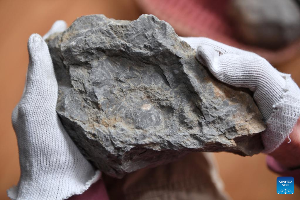 This photo taken on March 7, 2023 shows a fossil of Triassic siliceous sponge collected by Wu Xichun. (Xinhua/Liu Kun)
