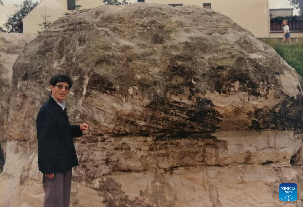This file photo taken in 1987 shows Wu Xichun investigating a Jurassic siliceous sponge reef group in Germany. (Xinhua)
