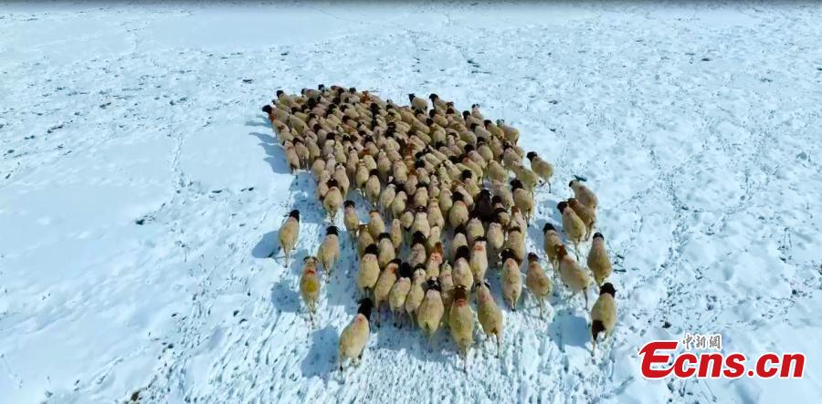 Livestock are on their journey to a spring pasture at Bayingol Mongolian Autonomous Prefecture, northwest China's Xingjiang Uygur Autonomous Region. (Photo: China News Service/Gan Minglian)