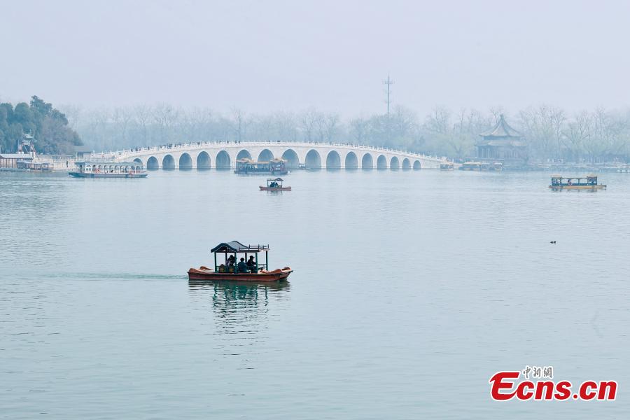Tourists take a cruise boat on Kunming Lake at the Summer Palace in Beijing, March 20, 2023. (Photo: China News Service/Yi Haifei)