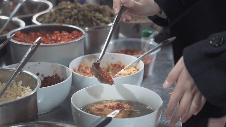 A customer puts chopped chilies in the Changsha rice noodles. (People's Daily Online/Yuan Meng)