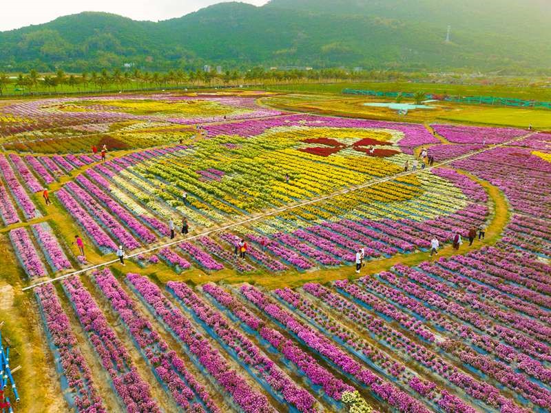 Nearly 280,000 stems of heat-resistant chrysanthemum recently came into full bloom at the Sanya Paddy Field National Park in Sanya, south China’s Hainan Province, drawing throngs of tourists to take in the colorful floral scenery.