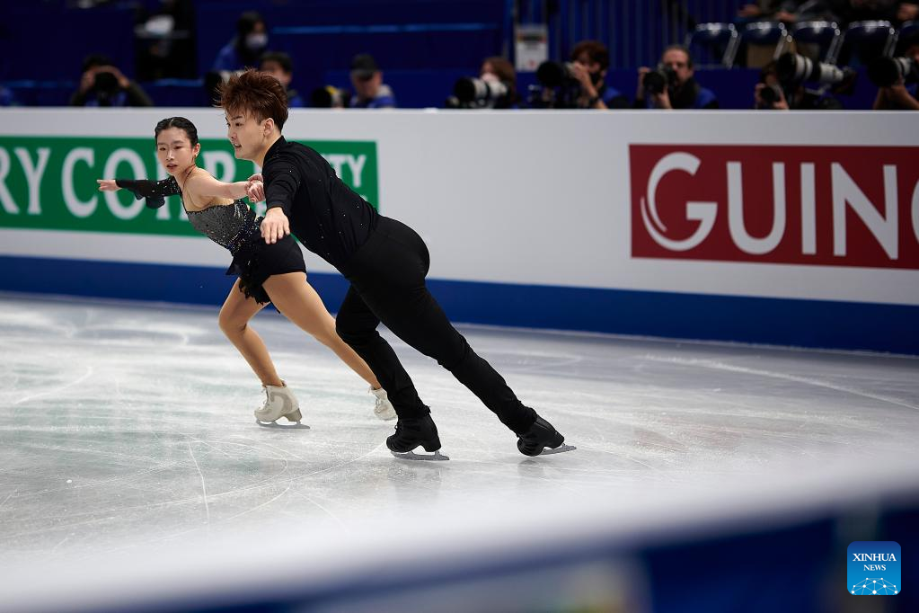 Zhang Siyang (L)/Yang Yongchao of China perform during the pairs short program at the ISU World Figure Skating Championships held at Saitama Super Area in Saitama, Japan, March 22, 2023. (Xinhua/Zhang Xiaoyu)