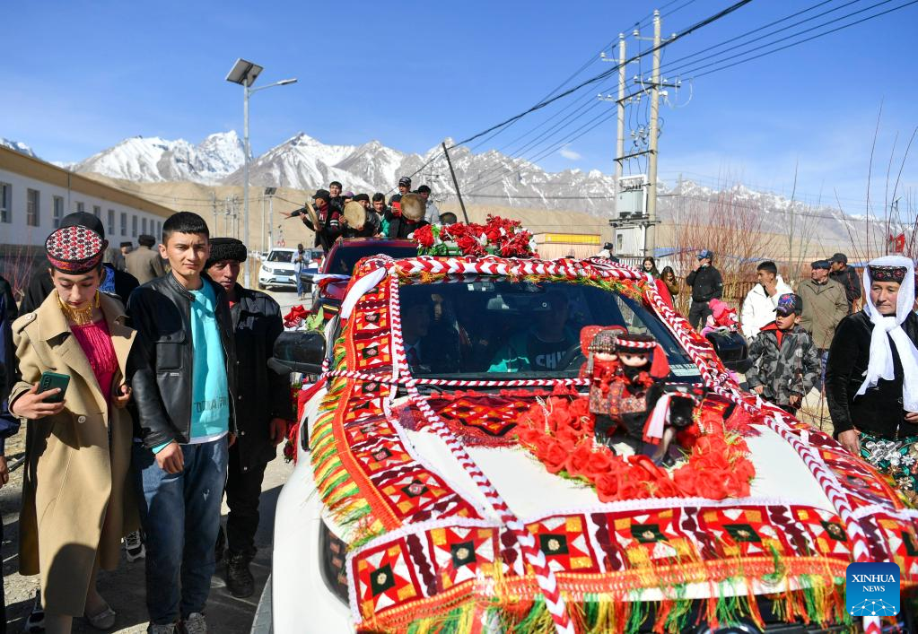 Mairmaitih Tirmur is on his way to pick up his bride in Taxkorgan Tajik Autonomous County, northwest China's Xinjiang Uygur Autonomous Region, March 19, 2023. (Xinhua/Hu Huhu)