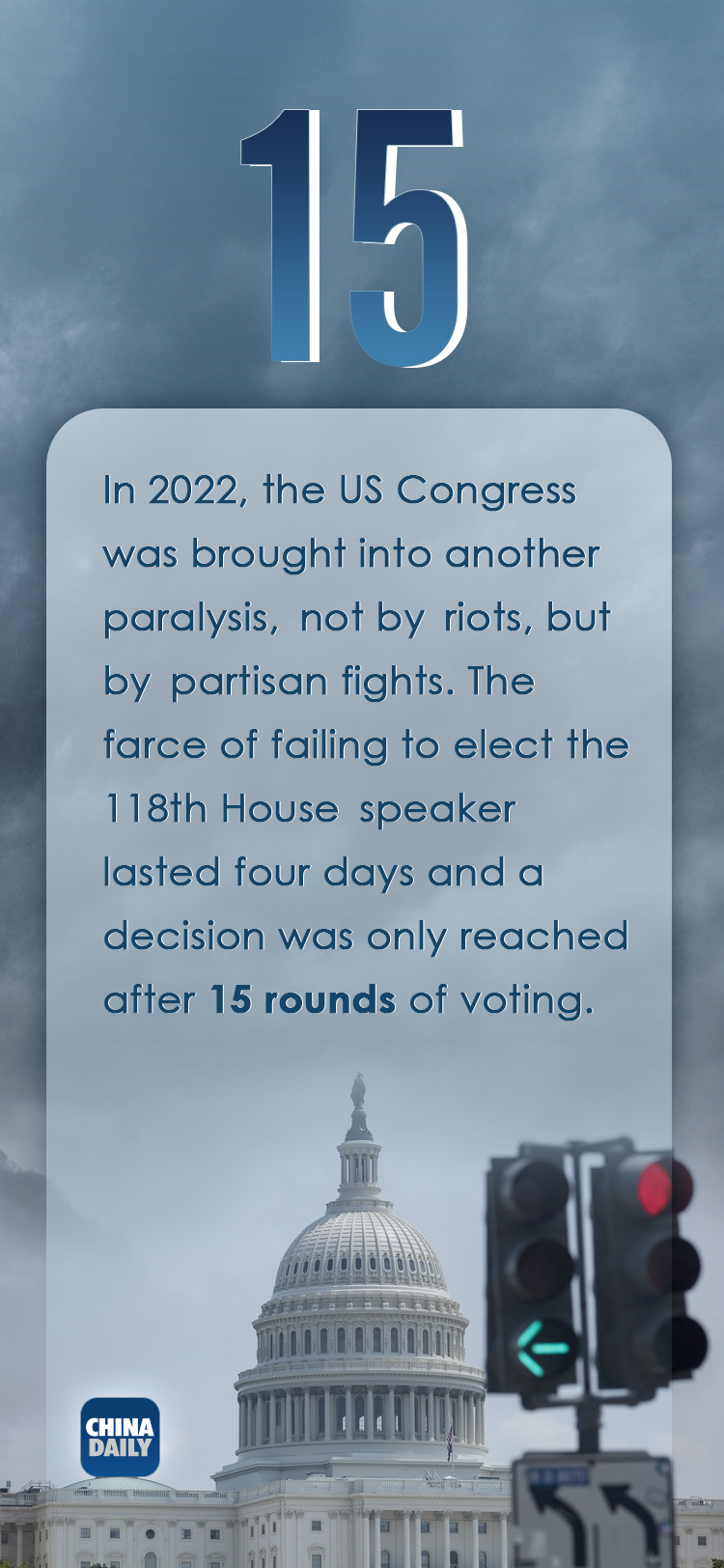 In 2022, the vicious cycle of democratic pretensions, dysfunctional politics and a divided society continued in the United States, according to a report published on the website of China's Ministry of Foreign Affairs on Monday.