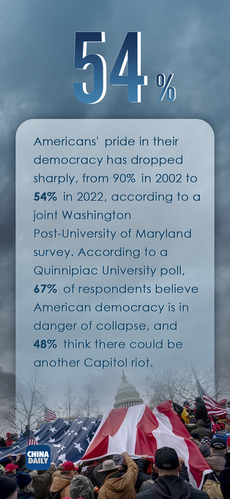 Based on facts, media comments and expert opinions, the report, titled "The State of Democracy in the United States: 2022", reveals American democracy was in chaos at home and left a trail of disasters behind as the US peddled and imposed its democracy around the globe.