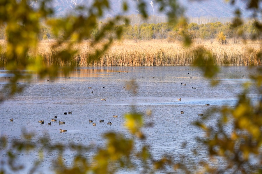 This photo taken on Nov. 1, 2022 shows the view of Yeya (Wild Duck) Lake national wetland park in Yanqing District of Beijing, capital of China. (Xinhua/Ju Huanzong)
