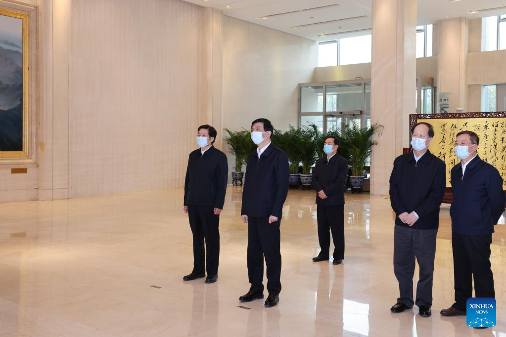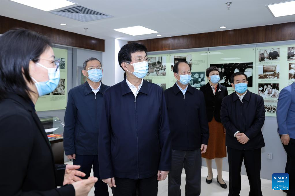 Wang Huning, a member of the Standing Committee of the Political Bureau of the Communist Party of China (CPC) Central Committee and chairman of the 14th National Committee of the Chinese People's Political Consultative Conference, visits the Central Committee of the Chinese Peasants and Workers Democratic Party (CPWDP) on March 21, 2023. Entrusted by Xi Jinping, general secretary of the CPC Central Committee, Wang recently made visits to the central committees of non-CPC parties and the All-China Federation of Industry and Commerce (ACFIC). (Xinhua/Liu Bin)