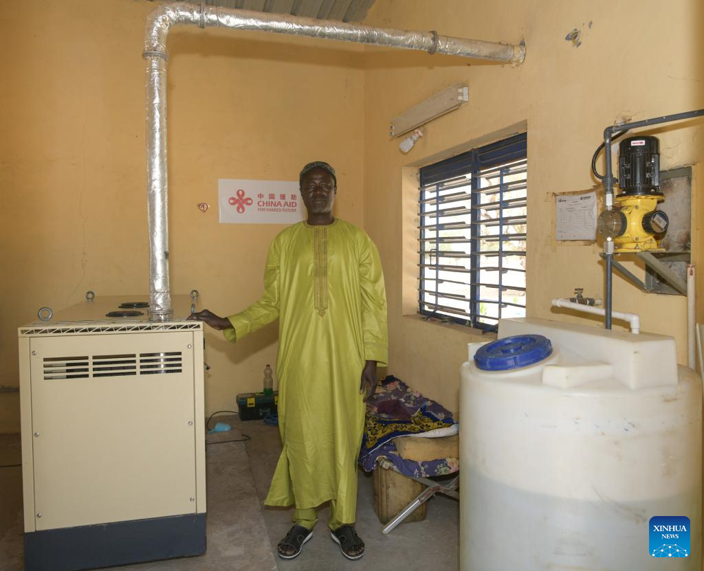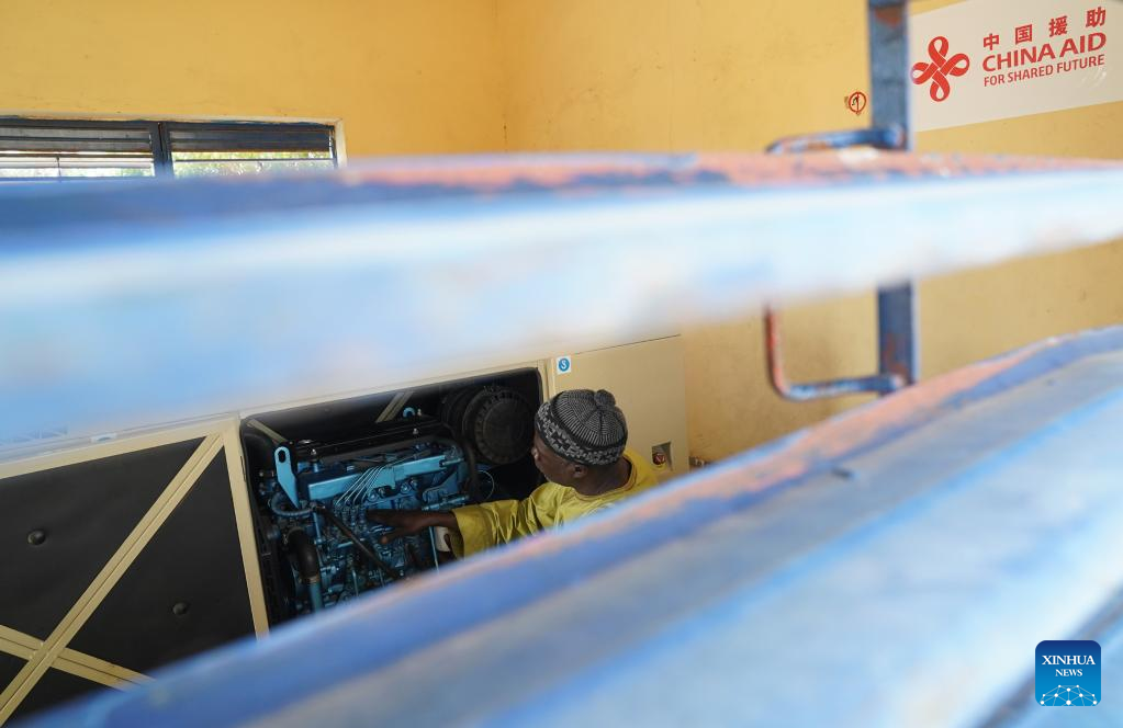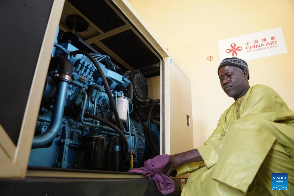 Mamadou Dieng cleans the generator set of a well project in Tenefoul Toucouleur Village, Diourbel, Senegal, March 20, 2023. (Xinhua/Wang Zizheng)