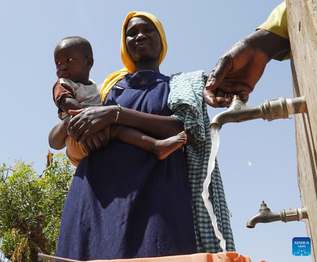A villager collects water in Tenefoul Toucouleur Village, Diourbel, Senegal, March 20, 2023. (Xinhua/Han Xu)